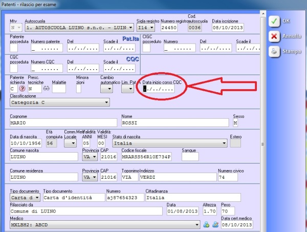 - nuovo campo "Data inizio corso" nella maschera per richiesta esami per le patenti C e D