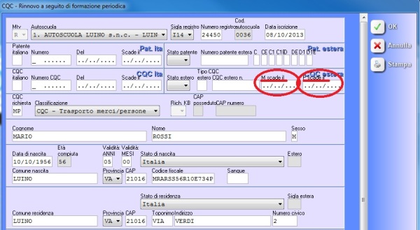 - nuovi campi con separazione delle scadenze Merci e Persone per le CQC estere