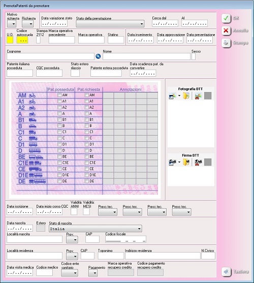 Aggiornamento Prenota (build 509) - Nuova maschera per richiesta patente