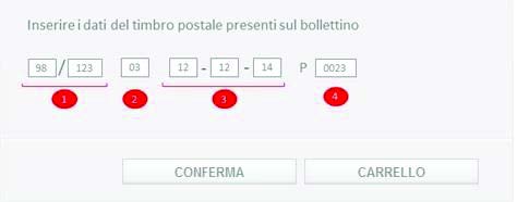 In questo caso il sistema richiederà l'inserimento dei dati del timbro postale attraverso la schermata riportata di seguito: