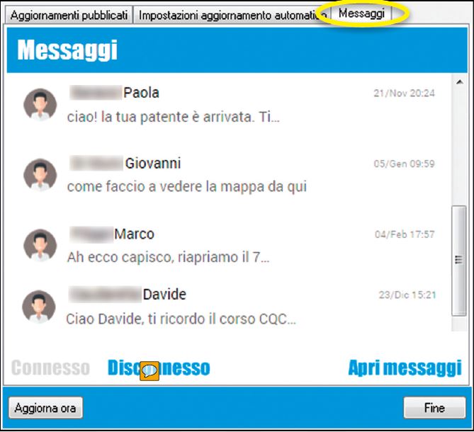 SIDA Connect, oltre a rimanere il sistema di aggiornamento automatico, diventa anche lo strumento tramite il quale riceviamo (e possiamo anche rispondere) i messaggi dei nostri candidati. Se infatti con SIDA Gestione inviamo i messaggi, con SIDA Connect è lo strumento con cui li riceviamo.