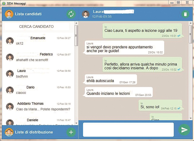 La possibilità di inviare messaggi on line ai propri candidati da SIDA Gestione è una funzione che si aggiunge alla già presente di invio e-mail e SMS.