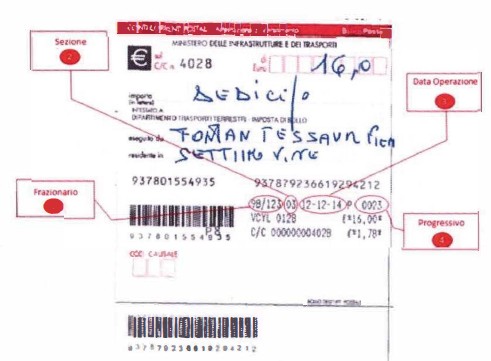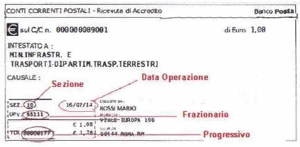 La composizione del timbro postale, che, laddove richiesto, deve essere inserito, è descritta nelle immagini seguenti. Al fine di facilitarne l'individuazione si riporta l'immagine di un bollettino postale e di una ricevuta di accredito rilasciata per pagamenti presso canale ITB: