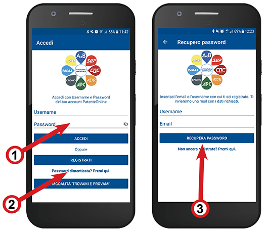 Nel caso il candidato non si ricordi più le credenziali di accesso, potrà sempre sfruttare la funzionalità di recupero delle credenziali (punto 2) inserendo l'email o l'username per ricevere le nuove credenziali con una nuova e-mail (punto 3).