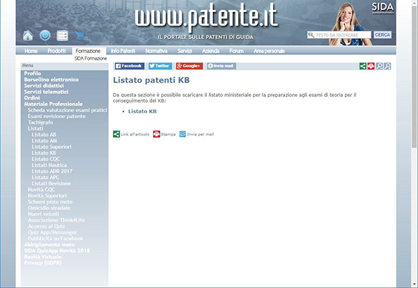 Le schede del listato KB possono essere assegnate anche on line, per le esercitazioni dei candidati su www.patenteonline.it
