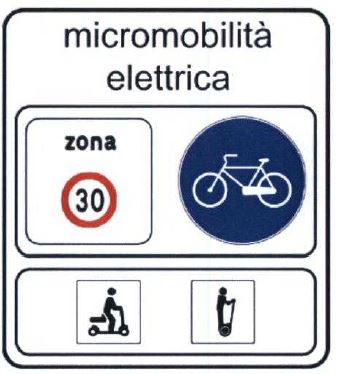 Il segnale di cui alla figura 5 fornisce, all'utente della strada che accede all'interno del centro abitato, l'informazione che è in atto la sperimentazione della micromobilità elettrica e che nelle zone 30 o su strade con limite di velocità massimo di 30 km/h, nonché sulle piste ciclabili e sui percorsi pedonali e ciclabili è ammessa la circolazione di monopattini elettrici e segway. Il pannello integrativo riportato in figura 6 fornisce l'informazione che trattasi di segnaletica sperimentale.
