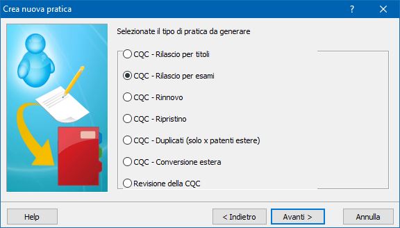 Nella maschera che appare in video scegliere tipo pratica CQC - rilascio per esami