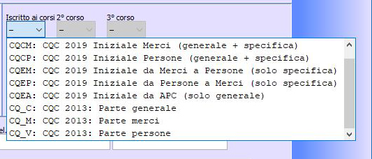 Per la preparazione dei candidati alla CQC secondo le nuove regole, occorre selezionare i corsi d'aula che hanno queste icone.