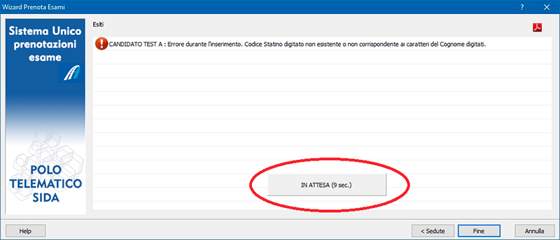 Nella pagina successiva inizierà l'operazione di prenotazione/rimozone massiva dei candiati, visualizzando man mano l'esito delle singole prenotazioni ed in basso lo stato attuale dell'operazione.