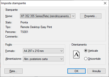 Si aprirà la pagina di impostazione della stampante.