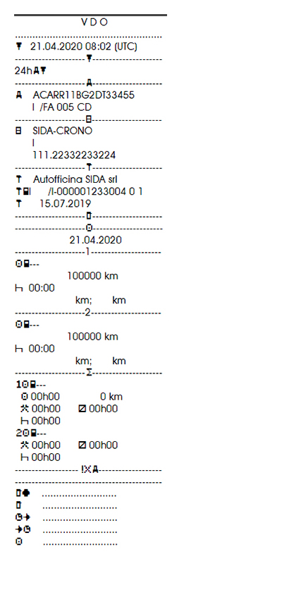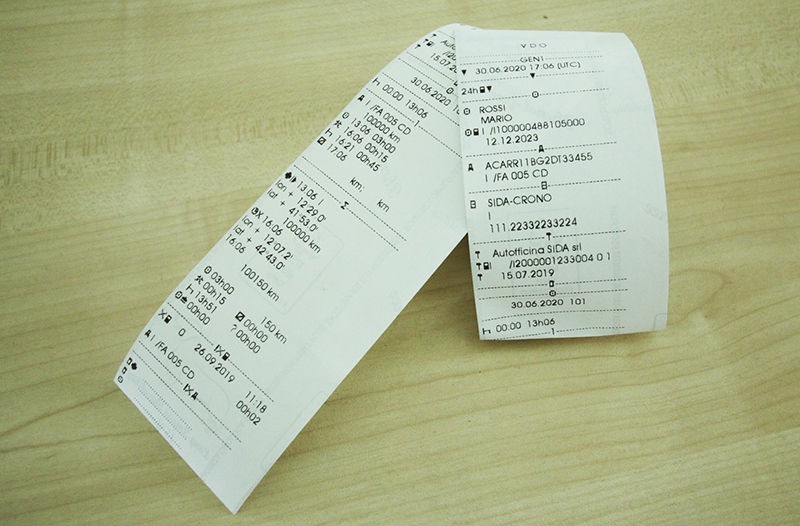 La stampa dello scontrino presenta già il nuovo standard di numerazione delle carte tachigrafiche.
