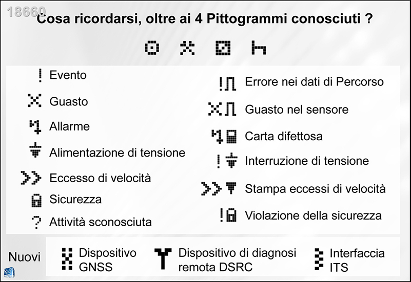 Abbiamo realizzato una trentina di nuove immagini, oltre al restyling di immagini preesistenti. Le immagini nuove riguardano soprattutto le nuove carte di controllo, i nuovi pittogrammi, le nuove carte tachigrafiche ed il nuovo tachigrafo 4.0.