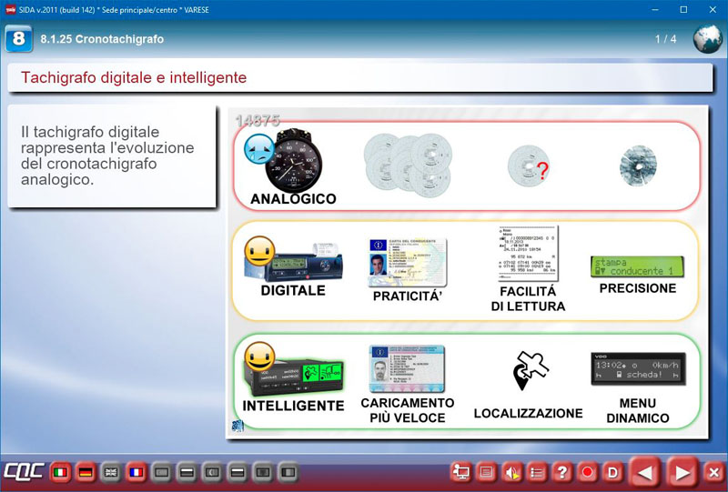 Questo aggiornamento riguarda nuovi contenuti testuali e multimediali nella parte CQC periodica GENERALE (sulle tematiche del tachigrafo, della sicurezza stradale, delle nuove tecnologie e dell'eco guida) e nuovi contenuti multimediali nella CQC periodica MERCI (seconda ora "Segnalazioni e dispositivi di sicurezza").