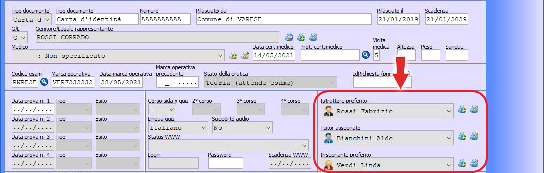 Le varie preferenze dei candidati sui formatori (Istruttori, tutor o insegnanti preferiti) si possono inserire anche dalla scheda anagrafica: