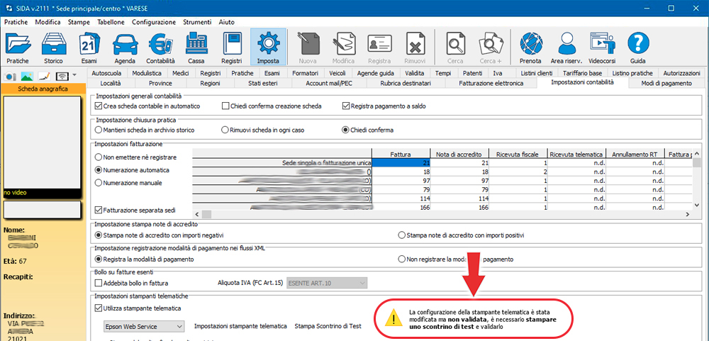 È stata migliorata la funzione di stampa dello scontrino di test; gli importi e i reparti sono ora stampati tutti chiaramente. Inoltre quando la configurazione dello scontrino viene modificata apparirà nel programma un promemoria che vi ricorderà di effettuare una stampa e una validazione dello scontrino.