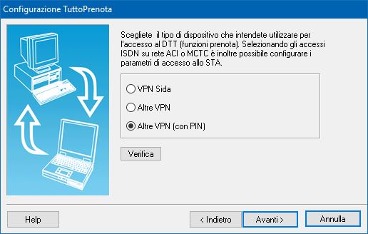 - Imposta trasmissioni: nel menù "Trasmissioni --> Imposta trasmissioni" è stata aggiunta l'opzione "Altre VPN (con PIN)". Scegliendo questa nuova opzione si potrà usufruire di VPN diverse da quella SIDA ma in fase di accesso al Portale verrà richiesto comunque il PIN.