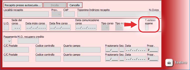 - Candidati CQC con diagnosi DSA: Nel menù "Prenota CQC" è stato aggiunto il campo "T.esteso esame", da compilare per candidati con diagnosi di DSA certificata. Tale campo se compilato permetterà al candidato di avere a disposizione più tempo all'esame di teoria.