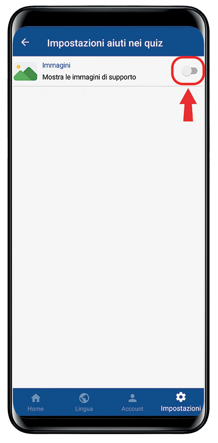 Nell'app di SIDA i candidati possono utilizzare la nuova funzione "aiuti" che permette di disattivare la visualizzazione delle immagini nelle esercitazioni per argomento.