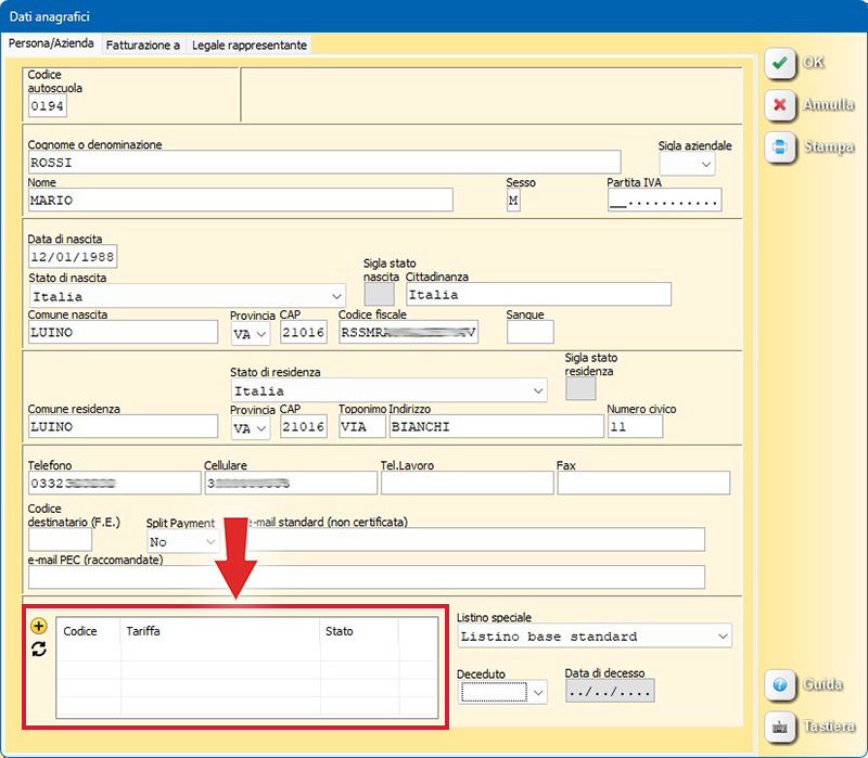 Per maggiori informazioni su come creare una nuova anagrafica da "Storico" o "Contabilità" consultare il manuale online alla pagina: Come inserire l'anagrafica di un nuovo cliente