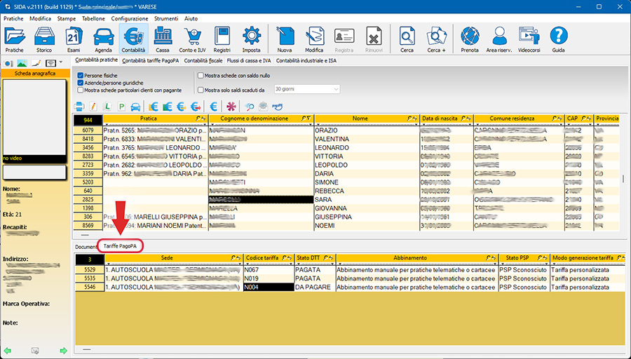 - Lista tariffe pagoPA per singola pratica: nella sezione "Contabilità" --> "Contabilità pratiche" è stata aggiunta la voce di menù "Tariffe PagoPA" che mostra tutte le tariffe legate alla pratica selezionata, con possibilità di ordinarle.