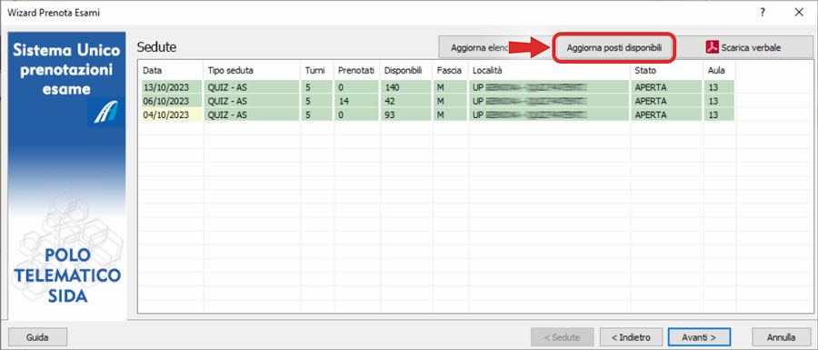 • Prenotazione esami - Aggiornamento posti disponibili: alla voce di menù "Esami --> Prenota esami" nella schermata con l'elenco delle sedute se si clicca su "Aggiorna posti disponibili" vengono aggiornate anche le sedute con posti disponibili pari a zero. In questo modo sarà possibile vedere se si liberano posti prima dell'esame.