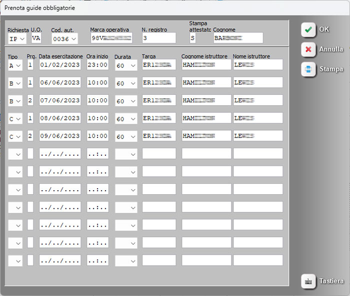 • Corretto bug che, nelle pratiche di riporto teoria, mostrava la marca operativa sbagliata nella barra arancione a sinistra sotto la fotografia (nell'anagrafica del candidato veniva mostrata corretta).