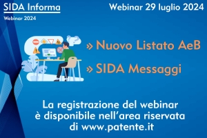 nell’area riservata di www.patente.it (voce di menu “Webinar”) è disponibile la videoregistrazione del webinar “SIDA Informa” del 29/07/2024.