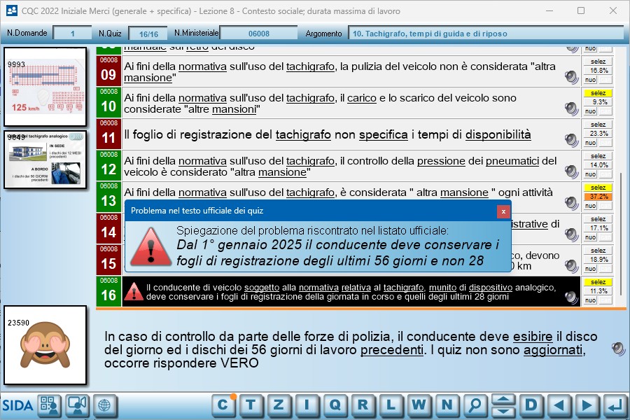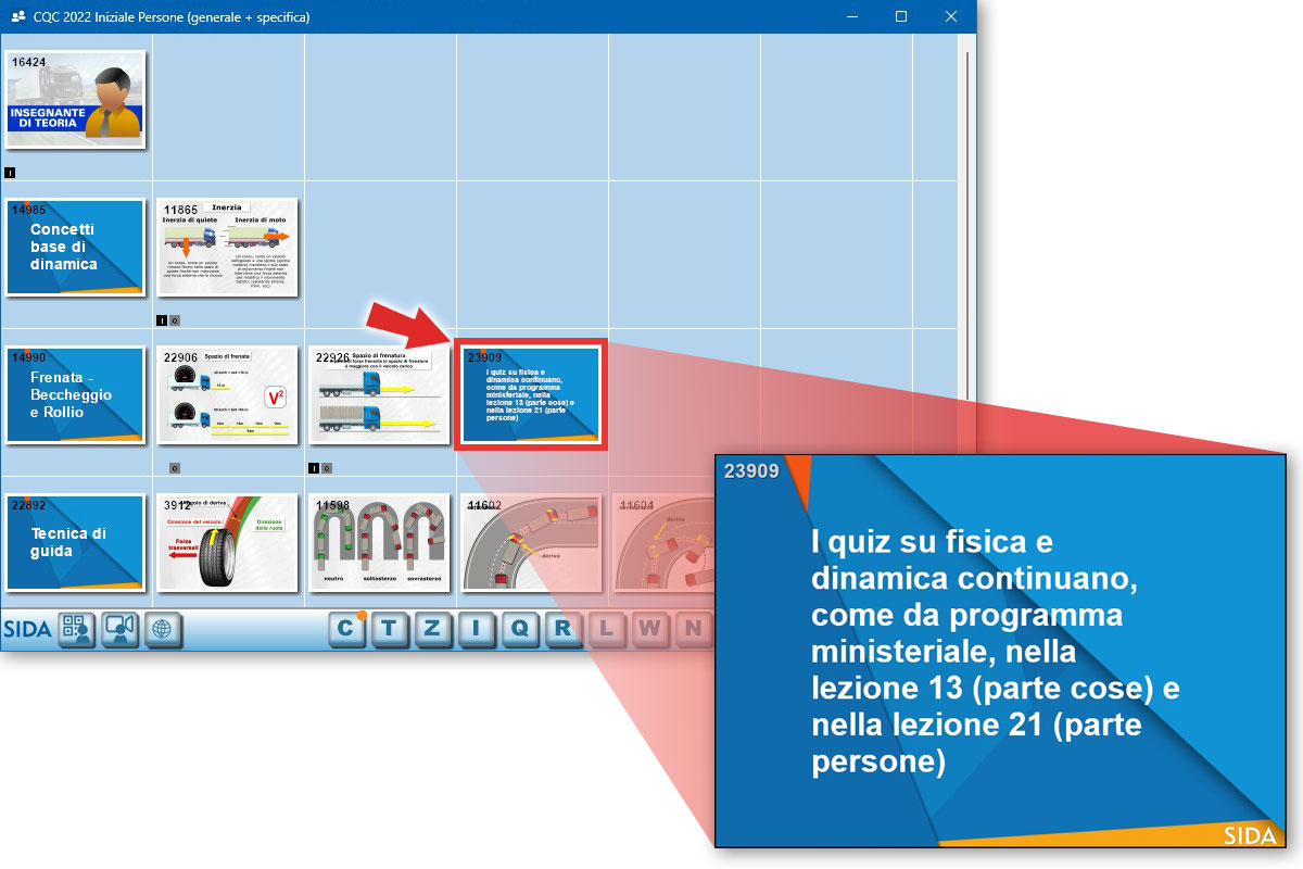 Come già precisato nel precedente aggiornamento, ricordiamo che, a causa del programma ministeriale, parte dei quiz su fisica e dinamica dei veicoli (presenti inizialmente tutti nella lezione n. 2) sono stati spostati nelle parti specialistiche (cose e persone). Nella parte comune rimangono una manciata di quiz. Questa situazione può creare confusione o difficoltà nella gestione della materia durante la lezione in aula. Fermo restando che non ci è possibile raggruppare tutti i quiz nella parte comune in quando non saremmo aderenti con il programma ufficiale, abbiamo inserito in aula (nella lezione n 2) un slide di "promemoria" relativamente alla posizione di tutti i quiz di fisica e dinamica.