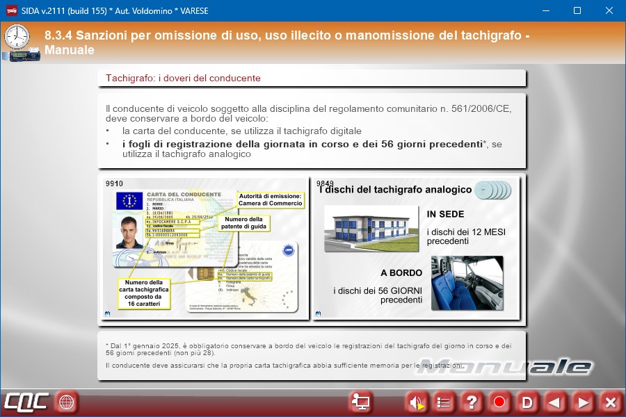 A partire dal 31/12/2024 vige l'obbligo da parte del conducente di presentare su richiesta degli organi di controllo le registrazioni delle attività svolte nel giorno in corso e nei 56 giorni precedenti.