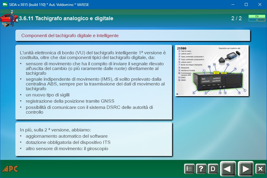 Paragrafo 3.6.11 Tachigrafo analogico e digitale Integrazione paragrafo con componenti del tachigrafo intelligente |
