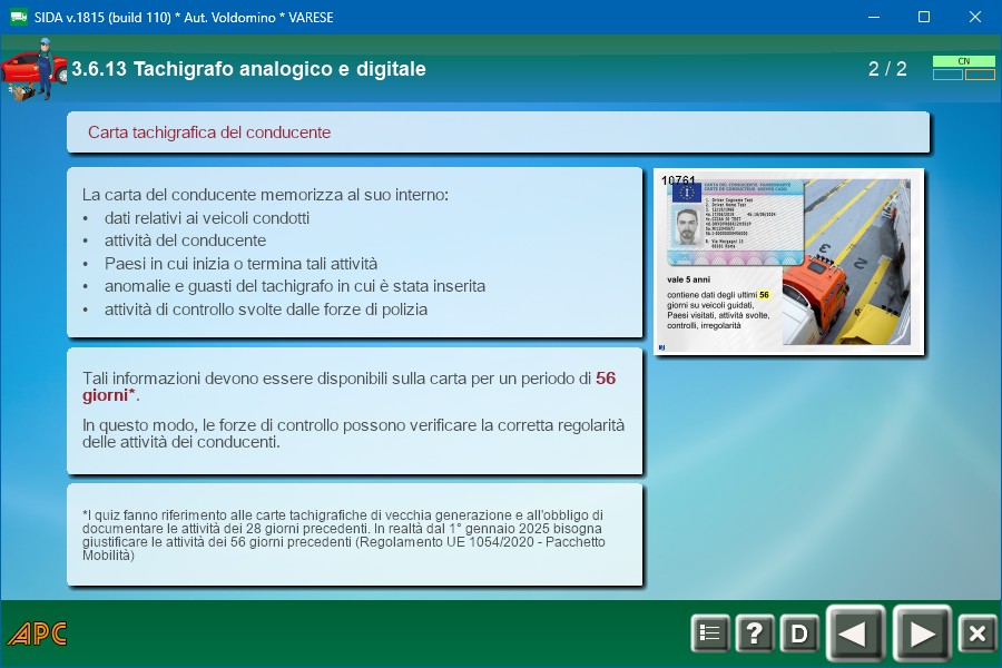 Paragrafo 3.6.13 Carta tachigrafica del conducente Aggiunta la specifica dei 56 giorni anzichè 28 |