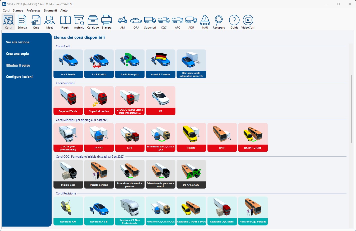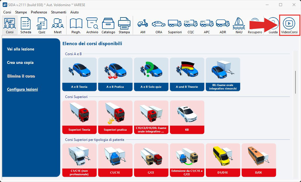 In ogni momento da SIDA Aula sarà possibile consultare i videocorsi tramite l'apposita icona che si trova in alto a destra:
