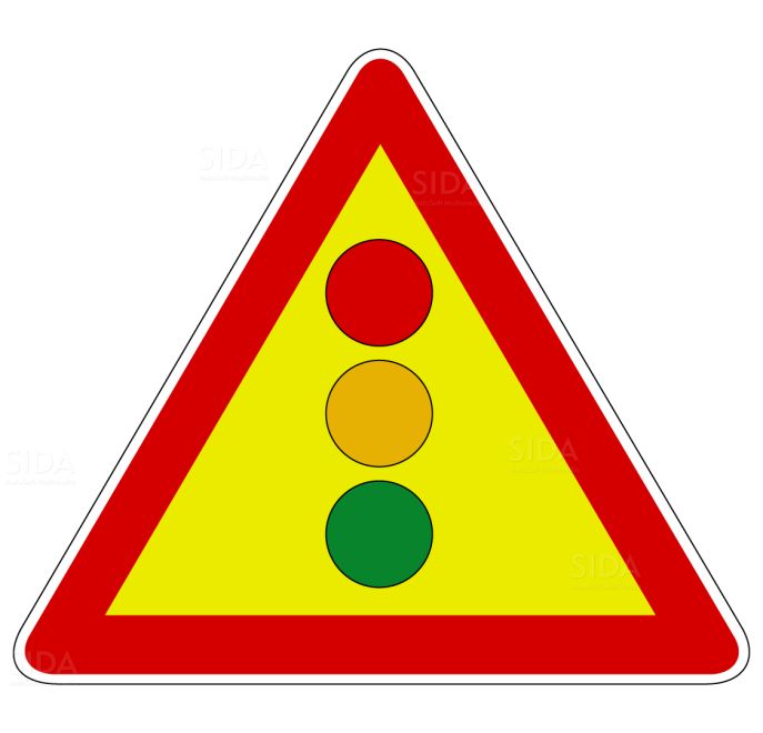 c) TRANSITO ALTERNATO A MEZZO SEMAFORI. Quando non sia possibile ricorrere ai due sistemi precedenti per la lunghezza della strettoia o a causa della non visibilità reciproca tra le due estremità della strettoia stessa, il senso alternato deve essere regolato da due semafori comandati a mano o con funzionamento automatico. Nel caso di cicli a tempo fisso, la fase di rosso non deve superare i 2', salvo casi eccezionali di strettoie di grande lunghezza. Fuori dei centri abitati l'impianto semaforico deve essere preceduto dal segnale di pericolo temporaneo SEMAFORO (fig. II.404) con una luce gialla lampeggiante inserita al posto del disco giallo del simbolo. Il collegamento "semaforo-centralino-semaforo" può avvenire via cavo o via radio o con altri sistemi che comunque garantiscono l'affidabilità del collegamento. Il semaforo va posto sul lato destro, all'altezza della striscia di arresto temporanea. Se il traffico in approccio può disporsi su più file, il semaforo deve essere ripetuto a sinistra, sulla linea di separazione dei sensi di marcia. La messa in funzione di un impianto semaforico per transito alternato deve essere autorizzata dall'ente proprietario o concessionario della strada, che ha la facoltà di stabilire o modificare la durata delle fasi, in relazione alle situazioni di traffico.