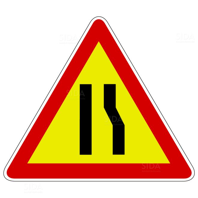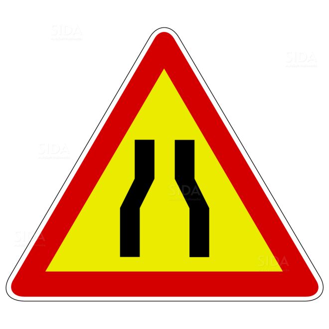 1. Qualora la presenza dei lavori, dei depositi o dei cantieri stradali determini un restringimento della carreggiata è necessario apporre il segnale di pericolo temporaneo STRETTOIA in una delle tre versioni previste (figg. II.384, II.385 e II.386). Se tale segnale viene posto vicino alla zona lavori o di cantiere, dopo gli altri eventuali presegnali deve essere corredato da pannello integrativo indicante la distanza della strettoia.