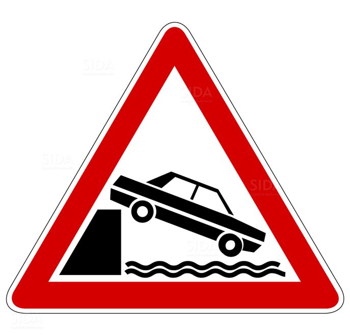 1. Il segnale SBOCCO SU MOLO O SU ARGINE (fig. II.28) deve essere usato per presegnalare che la strada sbocca su un molo o su un argine di fiume o di canale, con pericolo di caduta in acqua.