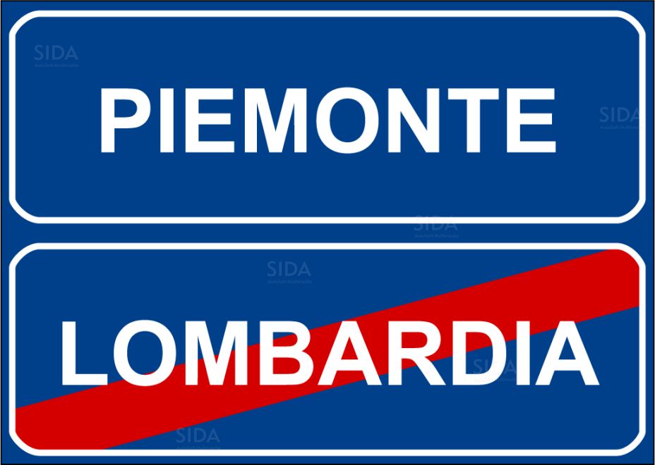 7. I segnali INIZIO E FINE REGIONE (fig. II.275) e INIZIO E FINE PROVINCIA (fig. II.276) sono a fondo verde o blu, in relazione al tipo di strada sulla quale sono installati, con cornici ed iscrizioni bianche. Il nome della regione o provincia in cui si entra è posto superiormente, quello della regione o provincia da cui si esce, posto inferiormente, è barrato con una fascia obliqua rossa, come nel segnale di fine centro abitato. Le dimensioni suggerite del segnale sono di 90x200 cm.