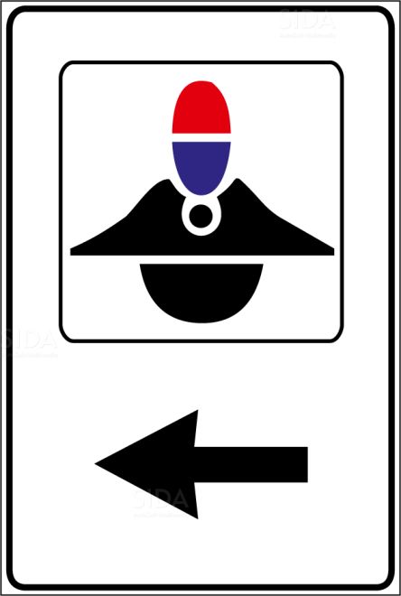 10. I segnali di cui al comma 9 sono posti perpendicolarmente all'asse stradale, all'altezza del punto segnalato e sono costituiti dal simbolo e da una freccia orizzontale rivolta verso l'ingresso. I simboli sono fissati nelle figure da II.100 a II.231. Le dimensioni sono le stesse di quelle dei segnali che indicano servizi di impianti utili (tab. II.8). Il colore del fondo è bianco, con cornice e freccia nera (figure II.277, II.278, II.279, II.280, II.281, II.282, II.283, II.284).