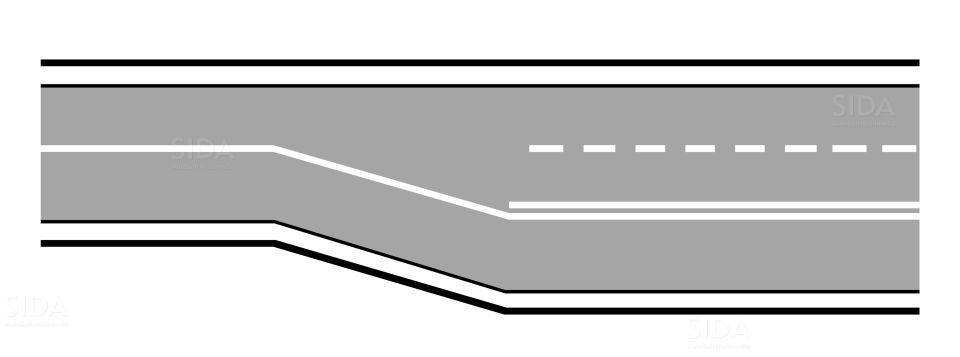 1. Le strisce di raccordo sono strisce continue oblique di colore bianco e vanno usate in dipendenza di variazioni della larghezza della carreggiata utilizzabile dal traffico, o delle corsie.