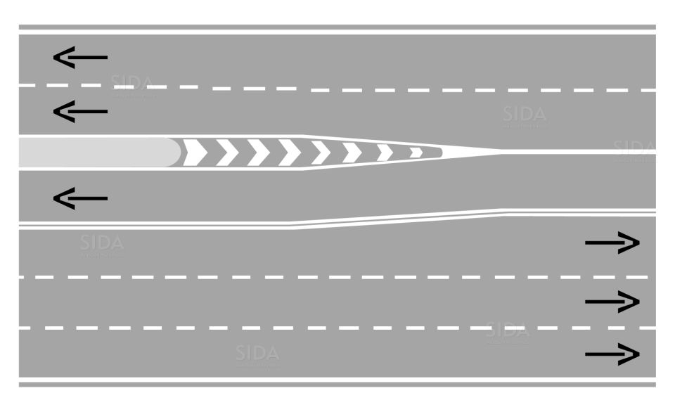 4. Le strisce di raccordo per far divergere il traffico da ostacoli o isole posti entro la carreggiata devono essere realizzate come indicato in figura II.430.