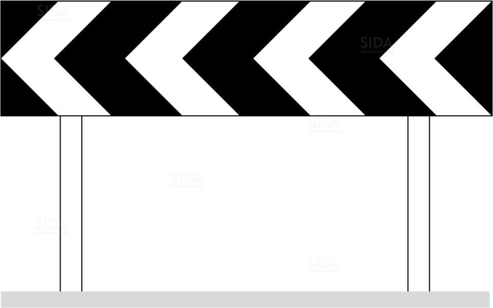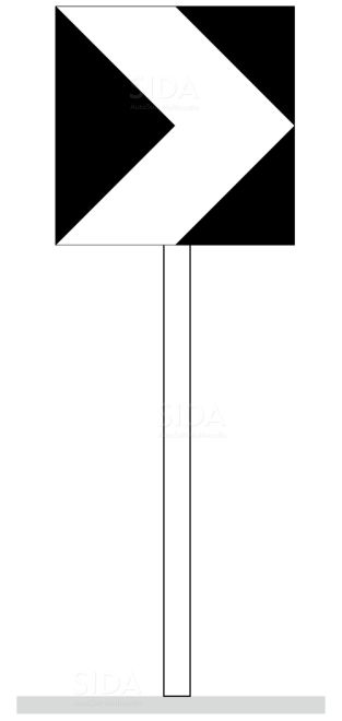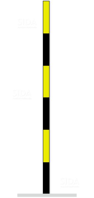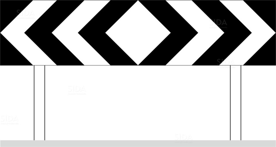 f) Delineatori di accesso (fig. II.469). Per particolari esigenze della circolazione possono essere adottati paletti aventi le superfici laterali a strisce alterne bianche e rosse di altezza di 20 cm. La sezione dl questi paletti può essere circolare, quadrata, rettangolare o triangolare. Tale tipo di delineatore sarà adottato per delimitare i due lati degli accessi stradali secondari non altrimenti presegnalati, e quelli che, per la loro ubicazione particolare, risultino difficilmente individuabili. I paletti devono avere altezza minima di 1 m da terra, sezione atta a garantire una buona visibilità a distanza, ed essere completamente rifrangenti. |