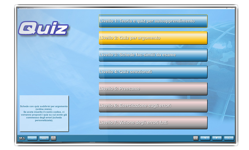 Il Livello 4 permette all’allievo di esercitarsi sui quiz statisticamente considerati più difficili – su quelli selezionati in aula dall’insegnante – sui quiz nuovi.