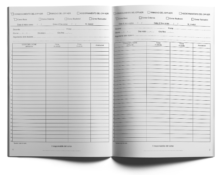 Per i corsi ADR esiste un solo registro perchè il DM del 6/10/2006, all'art. 5 comma 4 recita: "Per ogni corso di formazione deve essere predisposto un apposito registro delle lezioni...". La norma non parla di un registro di iscrizione e quindi tutto viene annotato su di un unico registro.
